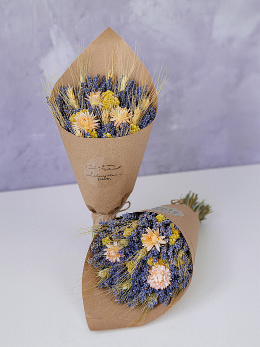 Подарите то, что останется с получателем надолго: оформите заказ на средние букеты из лавандина и сухоцветов в «Лавандовом замке» - в розницу или оптом.