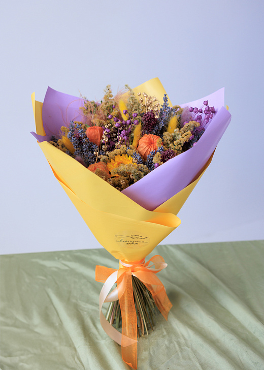 Букет из сухоцветов не требует особого ухода и станет прекрасным украшением вашего интерьера на долгое время.