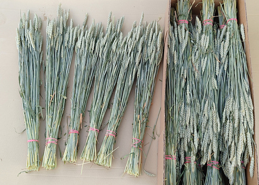 - Пучки пшеницы собраны на определенной стадии созревания и высушены естественным способом - это позволяет букетам и композициям из нашей пшеницы не осыпаться много лет.